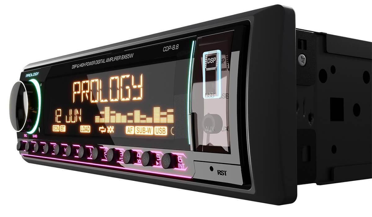 PROLOGY CDP-8.8 KRAKEN — первое головное устройство, объединившее современный DSP-процессор и встроенный 8-канальный усилитель D-класса высокой мощности (65 Вт на канал). Десять линейных выходов, 5 пар RCA для подключения внешних усилителей позволяют создавать аудиосистемы любой сложности.