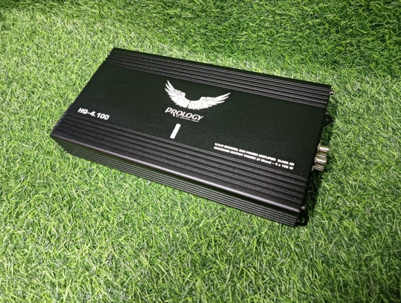 PROLOGY HQ-4.100 – 4/3/2-канальный усилитель мощности AB-класса. Мощность RMS (4/2 Ом): 4 x 100/170 Вт, мостовой режим (4 Ом): 2 х 350 Вт.