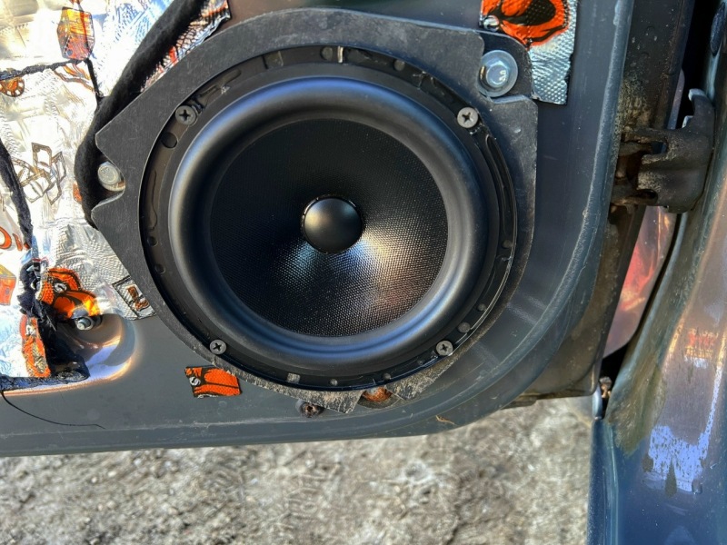 По параметрам – нормальные «дверные» динамики. Подвижки относительно лёгкие, так что моторы с ними справляются играючи, и чувствительность не проседает. Характеристики подвесов (в первую очередь, нижних, т. е. центрирующих шайб) выбраны компромиссно – не скажу, что мягкие, но резонанс высоко не задрался. В общем, эдакая «золотая середина».